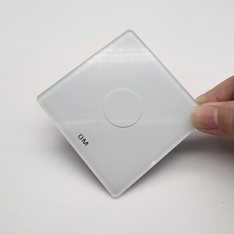 Material:High grade ultra clear glass; Thickness:1.1/2/3/4/5mm etc; Ordinary size: 80*80mm, 86*86mm, 118*72mm etc, also we suuply customized services; Silk screen printing: According your requirment, 5 colors at most; Glass edge: CNC process, Polished edge, 2.5D edge; Transparency:91%,95%(1 side AR coating),98%(2 sides AR coating); Process technology:Cutting, polishing edge, CNC, drilling hole, tempering, silk screen printing, AG processing, AR/AF coating etc; Application:Switch glass, home smart equipment glass; Packaging: 2 sides Pe protective filming+ kraft paper+ exported wooden case.
